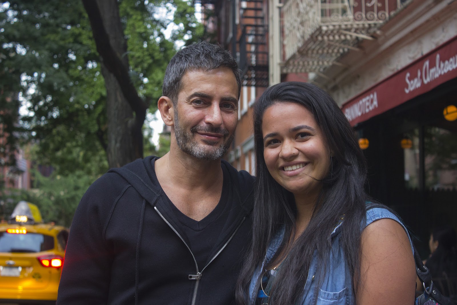 O dia já estava maravilhoso e ficou perfeito na hora que estávamos indecisa em que restaurante iriamos tomar um cafe. Decidimos ir no restaurante Tartine chegando la para nossa surpresa, estava rolando um set de filmagem e a rua estava toda interditada. Muito legal, e ai decidimos voltar para o primeiro restaurante Sant Ambroeus que pensamos em entrar. E para nossa surpresa, quem eu vejo na mesma esquina?! Sim, ele, ele mesmo o Marc Jacobs. E eu claro que como apaixonada por moda e pela suas roupas, claro que fui “tietar” ele, comprimentei e pedi para tirar uma foto nossa e o que mais incrível foi a simpatia e simplicidade que ele teve comigo. Nossaaaaaaaaaaaaaaaaaa, eu já era sua fã por todo o seu talento como Desing de moda e sua carreira super exitosa, mas conhecer-lo não tem preço ele é INCRÍVEL!!!!!!