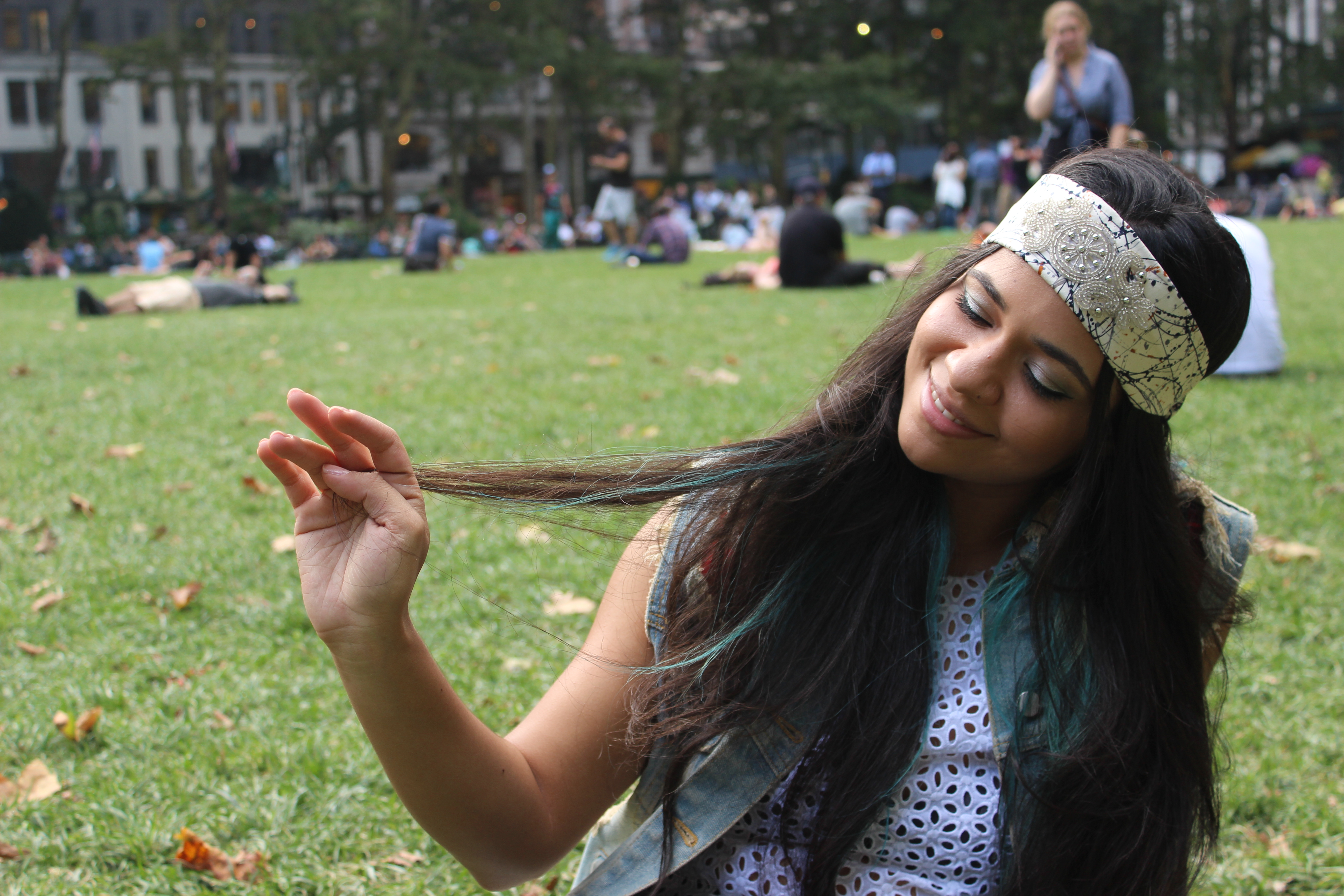 Look #1 For that fun hippie summer festival look, blow dry hair. part your hair down the middle. Slide head band on. So hippie chic!