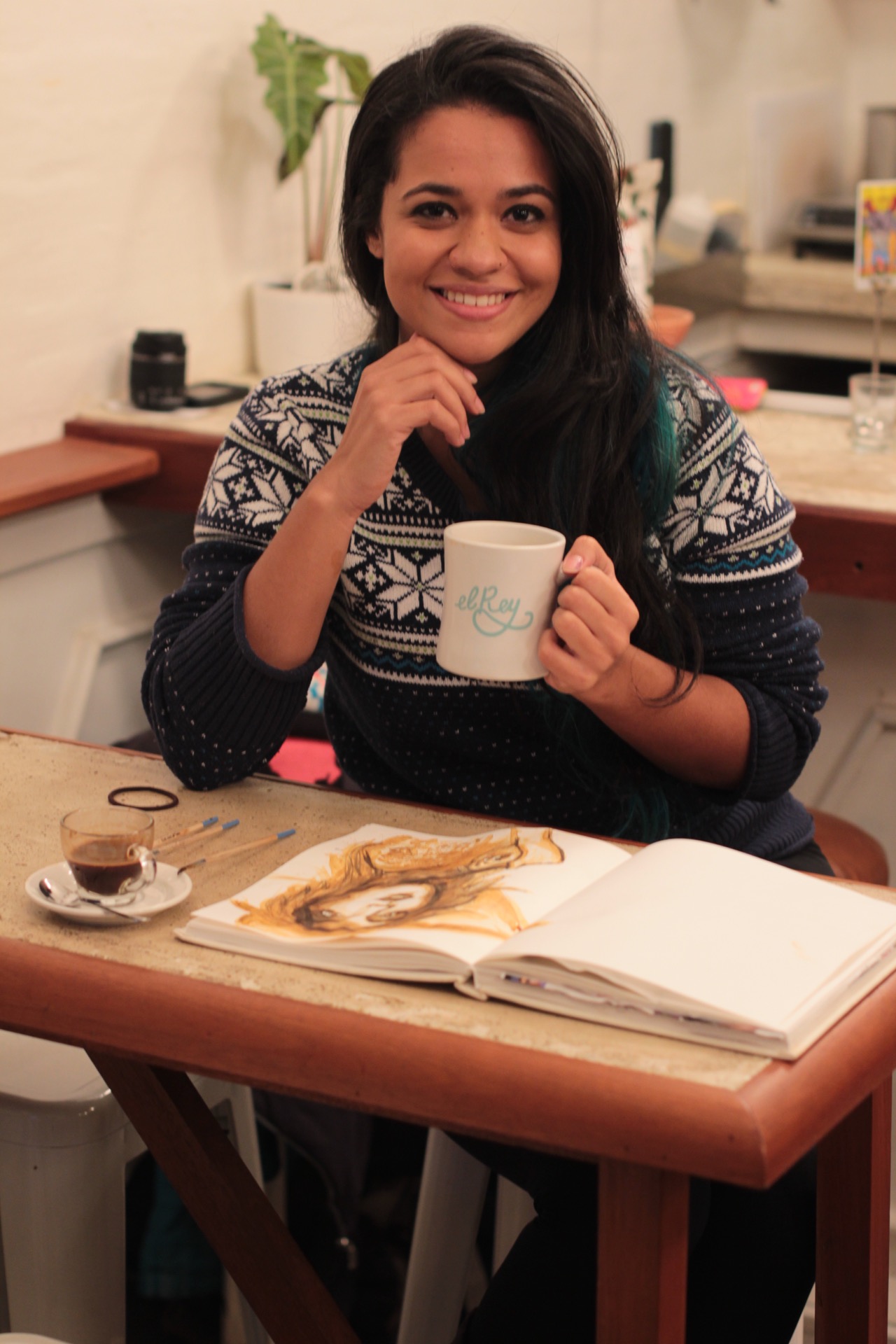El Rey Coffee Bar & Luncheonette is my second place of the #coffeeFashion project and I’m really happy of this opportunity for sharing a different coffee House you can found in NY with one of my fashion illustration made of coffee, also in the same coffee house!!