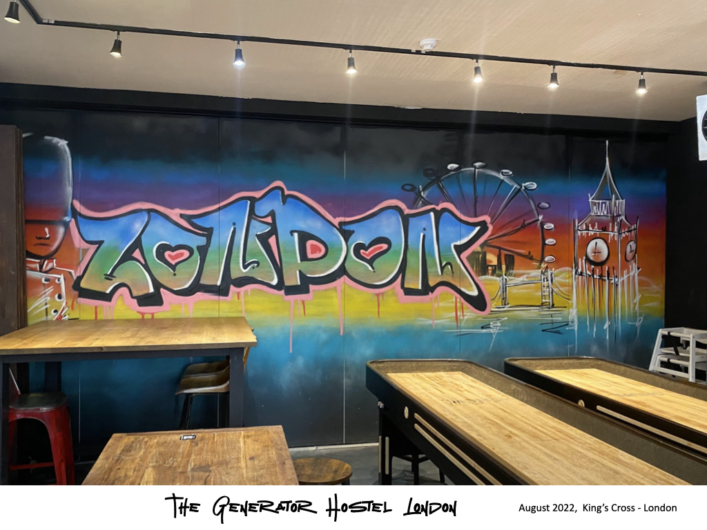Since 2022, my graffiti journey has taken me across Europe. Iβve painted in London, Milan, and Copenhagen, collaborating with places like The Dictionary Hostel, Premier Backpacking Hostel, Pizza Pilgrims Shoreditch, The Canvas CafΓ©, Funky ND Barbershop, Generator Hostels in London and Copenhagen, and Flower Burger in Milan. I also had the chance to be part of local exhibitions in Penge and join graffiti festivals.